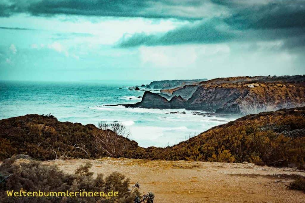 Unsere Wege führen uns nun weiter nach Odeceixe, wo wir von der Tierärztin die Tollwut-Titerbestimmung von Luni abholen. Leider hat das am selben Tag nicht mehr geklappt, so dass wir eine Nacht auf dem Stellplatz oberhalb der Klippen verbringen.