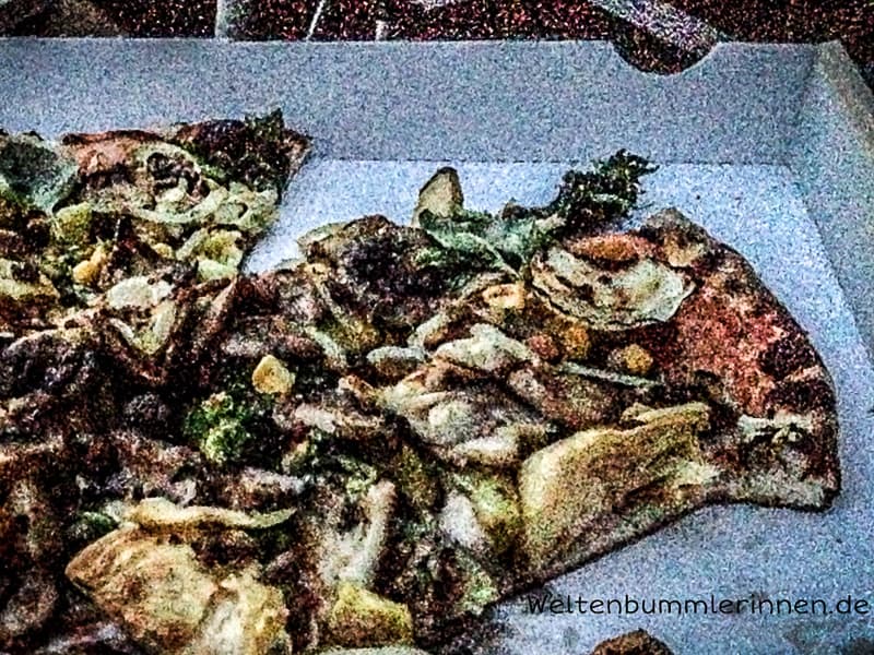 Und wir können uns vom örtlichen Pizzabäcker (der mit der besten Bewertung) nach vorheriger Absprache und Mitteilung unserer Koordinaten die seit einem halben Jahr allerbeste Pizza bringen lassen, die es überhaupt gibt. Was gibt es schöneres, als total ausgehungert mitten im Wald eine dann auch noch super schmeckende Pizza Vegetaria ohne Käse und dafür mit geschätzten 3 Millionen frischen Beilagen zu genießen?