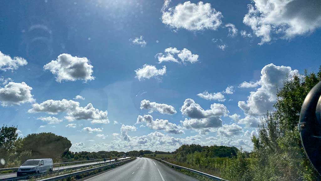 Das ist echt traurig. Da fährt man so vor sich hin und freut sich über das, was völlig normal sein sollte. Den Anblick von blauem Himmel mit weißen Schäfchenwolken.