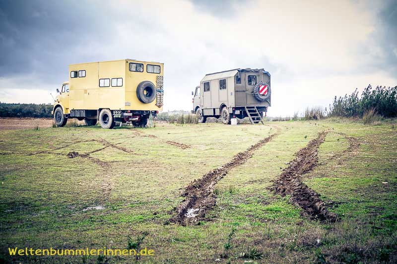 Wir merken recht schnell, dass unser neuer Parkplatz eher den Charme einer großen Pfütze verströmt, als vernünftig befestigt zu sein. Sei´s drum, sagen wir und zunächst noch, nicht so wirklich ahnend, dass die nächste Nacht nochmal reichlich Wassergeschenke von oben bereithalten wird.
