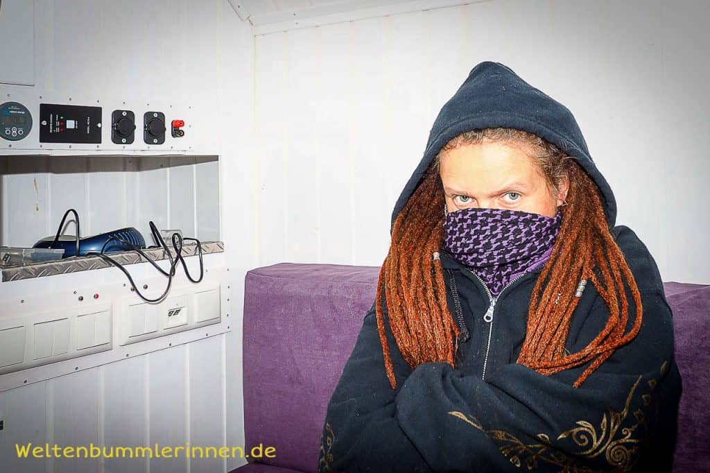 Startvorbereitungen in Progress… Lyggie friert erbärmlich vor sich hin und auch ich würde mich viel lieber an angenehmeren Temperaturen erfreuen. Darum schaue ich auch so griesgrämig drein. Doch das wird sich hoffentlich sehr bald ändern.