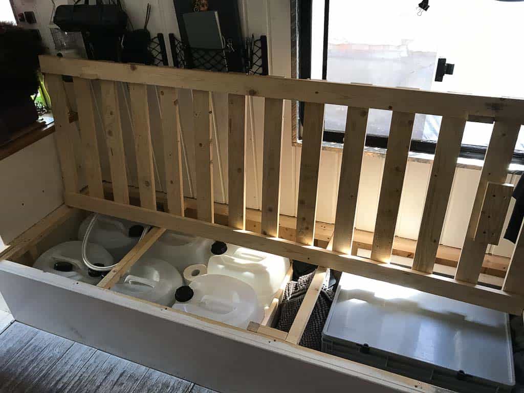 Die beiden Tanks mit je 250 Litern haben wir unter unserem Bett platziert, eine Lösung, die sich als ideal herausstellte.