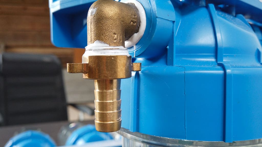Hier siehst du, wie ein mit Loctite 5331 abgedichteter Wasseranschluss – in dem Fall an der Seite eines unserer Wasserfiltersysteme – nach der Verwendung aussieht.