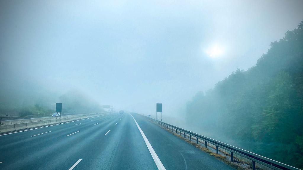 Die Autobahn 3 ist heute unsere ständige Begleiterin und so können wir nicht nur Sonnenschein, sondern auch diverse Nebelbänke bewundern.