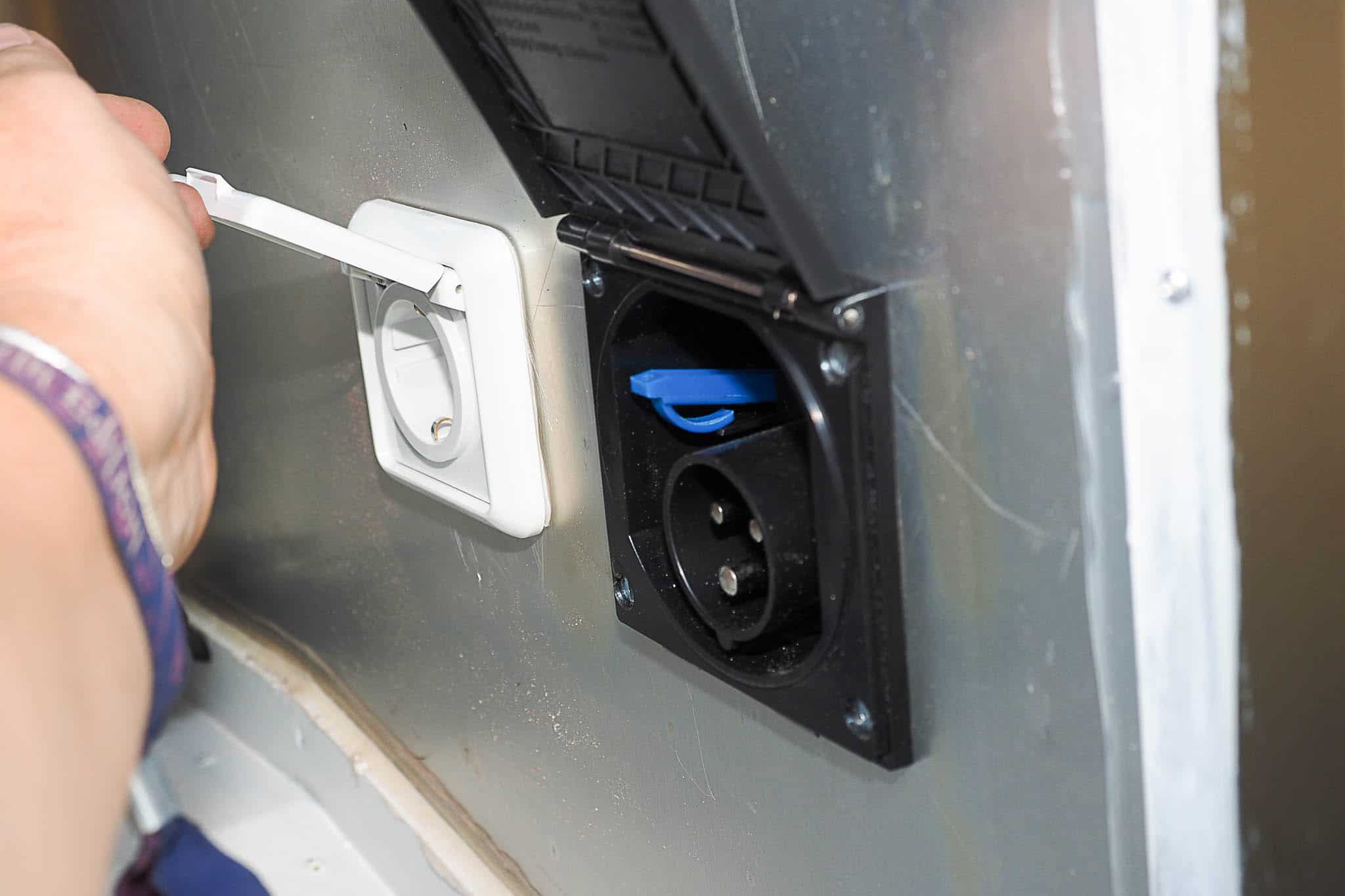 Im letzten Teil berichten wir zum einen, wie Außenstrom in unser Fienchen hineingelangen kann und wir auch 230V nach außen abgeben können.