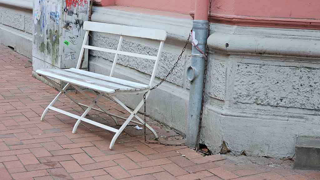 Dieses Foto ist stellvertretend für die Situation. Selbst alte Holzbänke müssen angeschlossen werden, damit niemand den Dreck dahinter beseitigen kann.