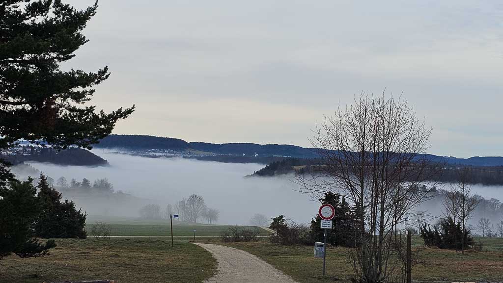 Auf der Schwäbischen Alb fanden wir einen recht schönen und leeren Übernachtungsplatz mit morgendlicher Nebelkulisse.