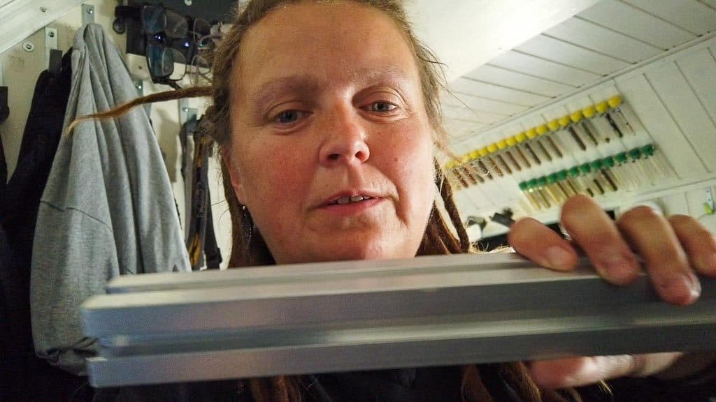 Da wir uns für die 360Wp-Module von Victronenergy entschieden haben, machen wir uns Gedanken über eine geeignete Befestigung. Wir benutzen viele Befestigungspunkte und professionelle Befestigungstechnik aus dem Hausbau. Unsere einzelnen “Nubbsies” , wie wir sie nennen, sind jeweil 33 cm lang und sind x-förmige Aluminiumprofile, welche wir mit Sikaflex 252 aufs Dach geklebt haben.
