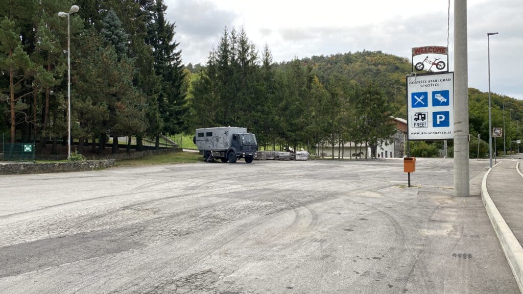 Wir fahren durch die Stadt Görz und ohne Kontrolle nach Slowenien ein, um dann knappe 50 Kilometer weiter einen ruhigen und kostenlosen Platz für die Nacht auf dem Parkplatz eines hervorragenden Restaurants zu buchen. Diesen kennen wir schon von unserer Reise im letzten Jahr und werden auch dieses Mal nicht enttäuscht.